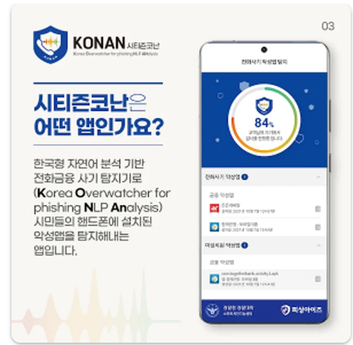 시티즌코난 - 일선 경찰의 요청으로 만들어진 보이스피싱 예방을 위한 대국민 무료 서비스 입니다. '피싱아이즈'와 함께 운영되고 있습니다.