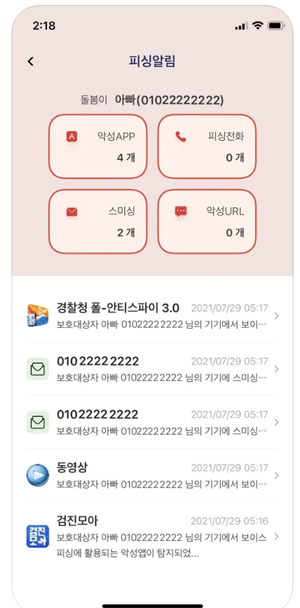 앱 내에서는 보이스피싱 시도 횟수, 차단된 악성 앱의 유형 등 다양한 통계를 확인할 수 있습니다. 이를 통해 본인의 스마트폰이 얼마나 안전하게 보호되고 있는지 한눈에 파악할 수 있죠.