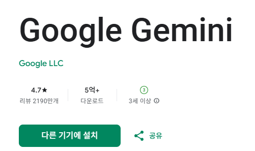 모바일에서도 제미나이 사용법은 간단합니다. 안드로이드 사용자는 Google Play를 통해 Gemini 앱을 설치할 수 있습니다.