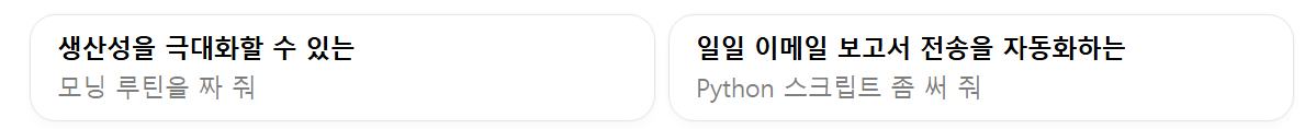 아이디어가 필요할 때 ChatGPT는 든든한 조력자가 됩니다. 친구의 생일 선물 아이디어부터 회사 프로젝트의 기획안까지, 다양한 상황에서 창의적인 제안을 받을 수 있어요.